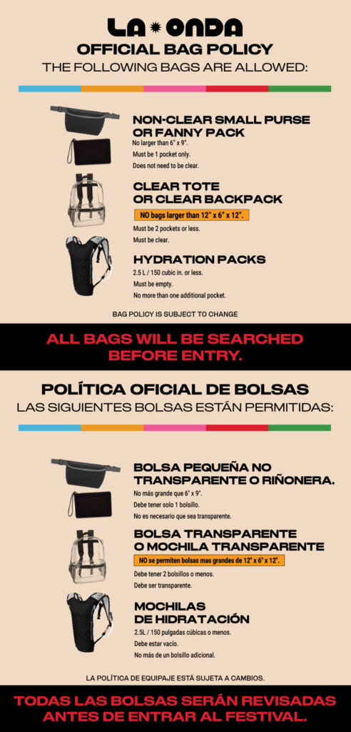 La Onda strives to become one of the most sustainable festivals by increasing compost, decreasing landfill waste and eliminating single use plastic. Learn about our sustainability initiatives here.